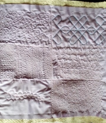 De rest van de dag hebben we een heerlijke bee gehouden, lekker met lapjes en draadjes en naaldjes en praatjes, een heerlijke lunch met Yolanda's chinese kippensoep (die hier thuis ook zeer gewaardeerd wordt) en verse broodjes en heerlijk beleg. Aan het eind van de middag nogmaals heerlijk gegeten en daarna ben ik weer opgestapt, het was nog een stukje treinen naar huis, maar heel goed te doen en eenmaal onderweg was er genoeg tijd om mijn Dear Jane blokje van de regiodag van het Quiltersgilde voor quiltshop 100 Rozen af te maken.